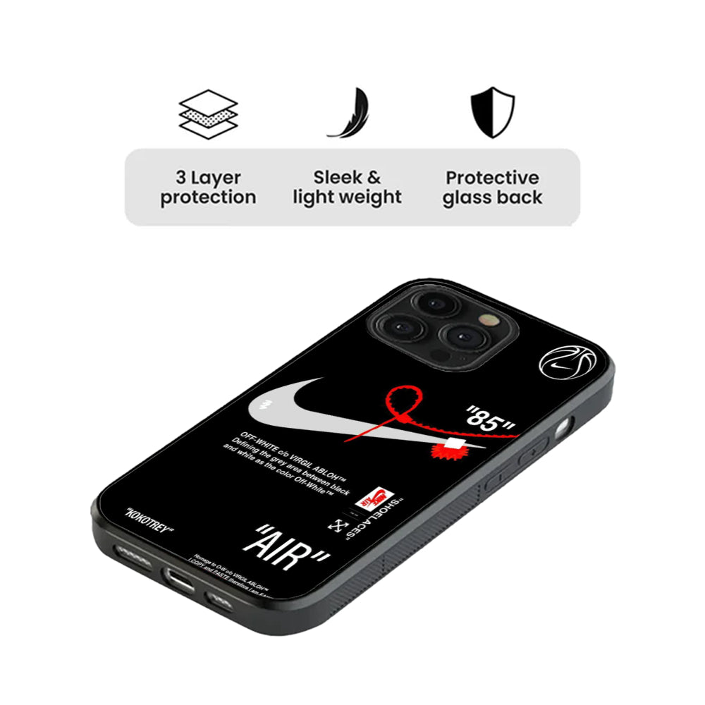 The design is a masterclass in deconstructed, high-contrast industrialism. Set against a deep obsidian finish, the iconic Swoosh is re-imagined with a raw, stitched aesthetic and the signature zip-tie orange. Featuring the legendary "85" and "SHOELACES" typography, it captures the raw energy of a movement that turned the world of fashion inside out.