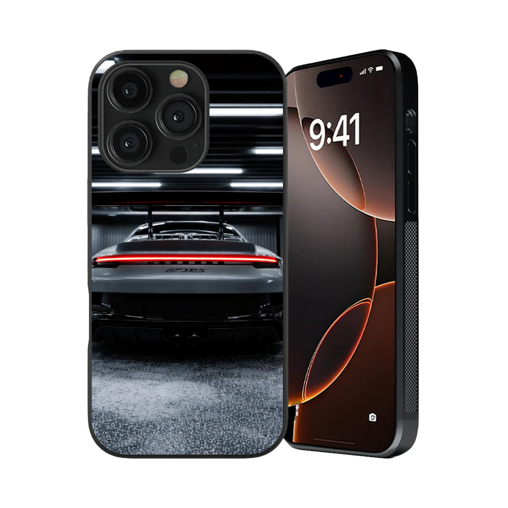 The design is pure, distilled aggression. The signature widebody rear of the GT3 RS emerges from the shadows of a neon-lit garage. The iconic glowing red light bar slices through the dark—a timeless badge of honor for those who lead the pack.