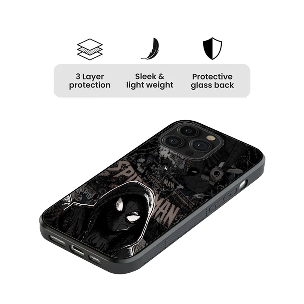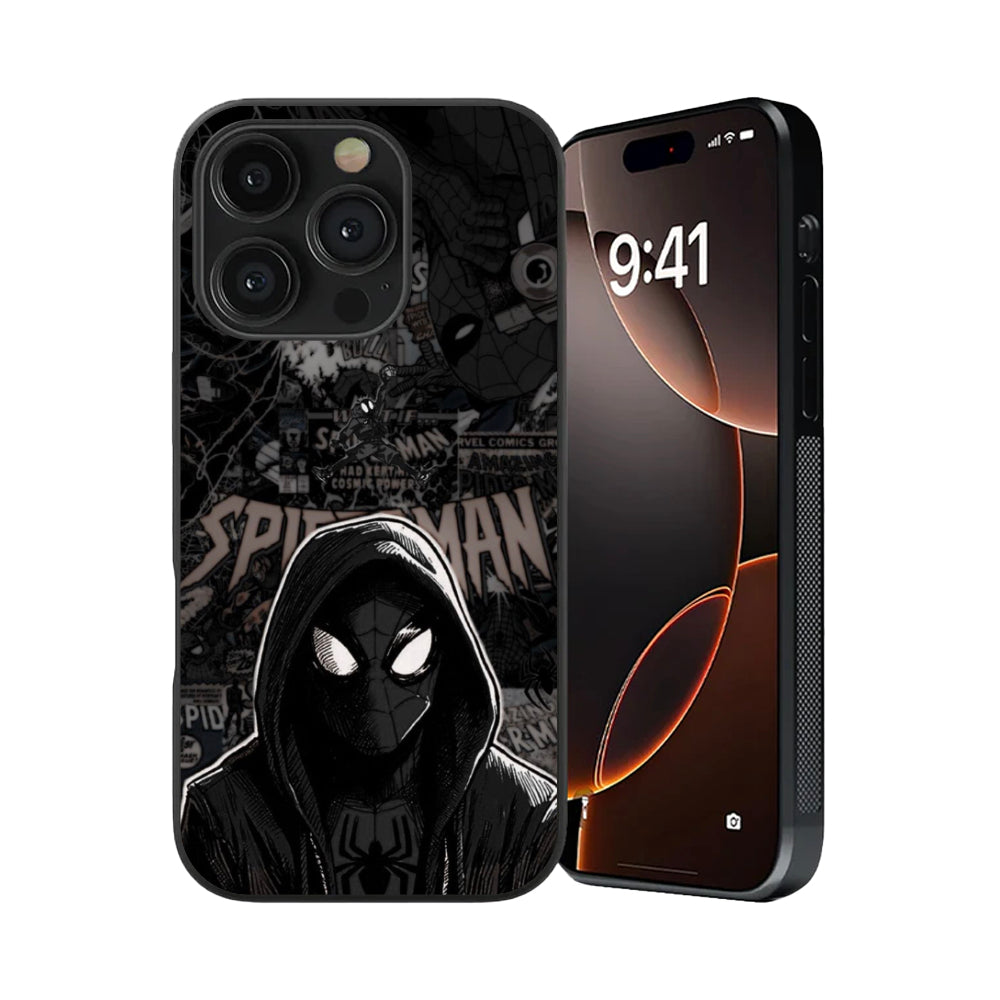 The design is a visceral, high-contrast masterpiece in monochrome. A gritty collage of classic comic-book covers and legacy panels serves as the backdrop for a hooded Miles Morales. With his unblinking white eyes cutting through the deep shadows, it captures the exact moment where tradition meets the urban hustle.